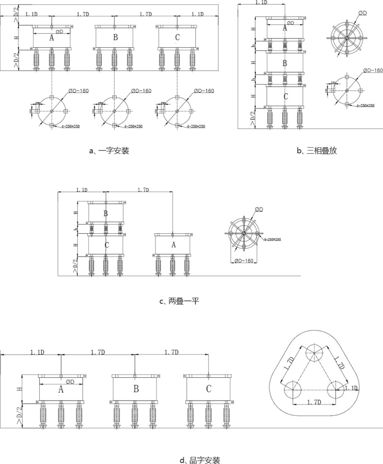 8、安装方式可三相垂直,也可品字或一字形;户外露天使用可大大减少基建投资;9、运行安全、噪音低,不需经常维护;